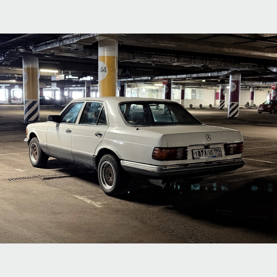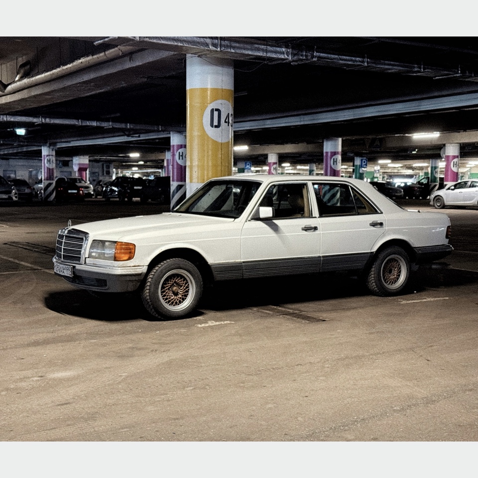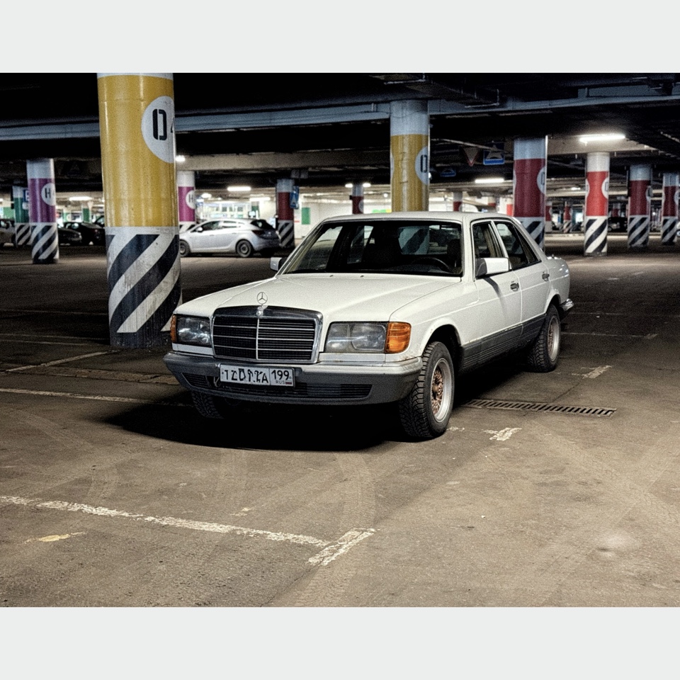 Mercedes Benz W126 280 SE 1983 в оригинальном белом цвете, с редким сочетанием бежево-оранжевого салона. Механическая коробка передач.